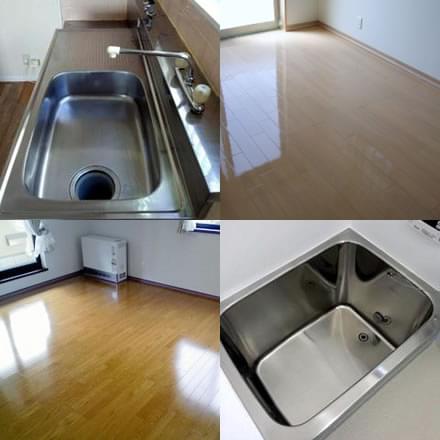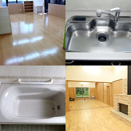 フロア、キッチン、水回りをコーティング。新築時にはキレイな期間を長くするために。 古くなってきたフロアもコーティングすることで 新築時のピカピカが蘇ります。